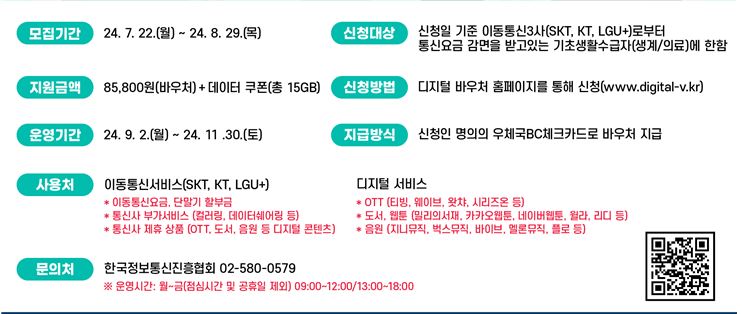 디지털 이용권(바우처) 시범사업은 기존에 통신요금 감면을 받고 있는 기초생활수급자(생계·의료급여)를 대상으로 참여자를 모집하여, 오는 9월부터 11월까지 3개월 동안 진행된다.